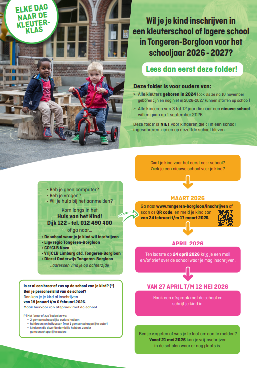 - Je kan je kind inschrijven van 19 januari t.e.m. 6 februari. Zo is er zeker nog plaats.